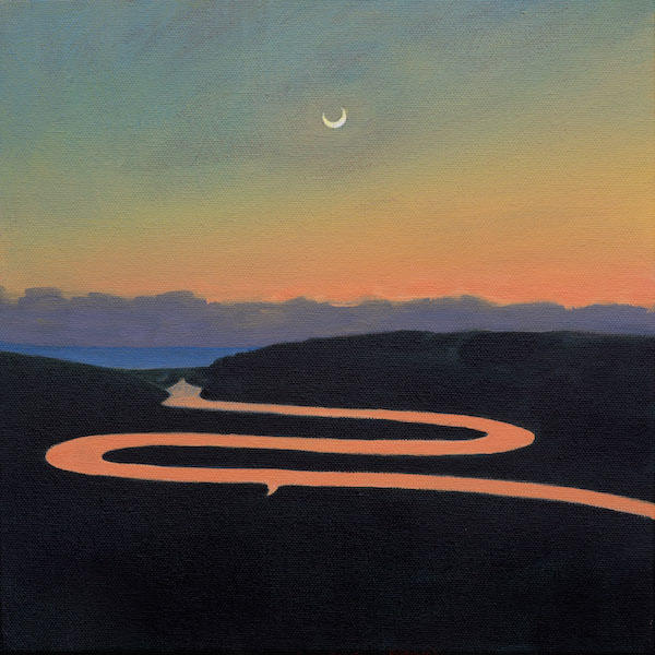 Cuckmere Haven 3, acrylic on canvas 30x30 cm Winter sunset and moonrise 2025. Soon to be exhibited in Alfriston Arts
